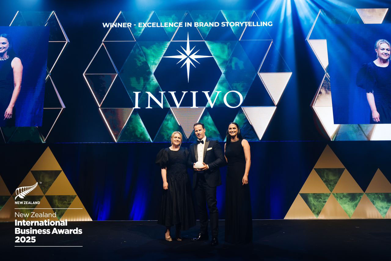A big one for the Invivo team at the 2025 New Zealand International Business Awards. Invivo was proud to be awarded the “Excellence in Brand Story Telling” Trophy.
